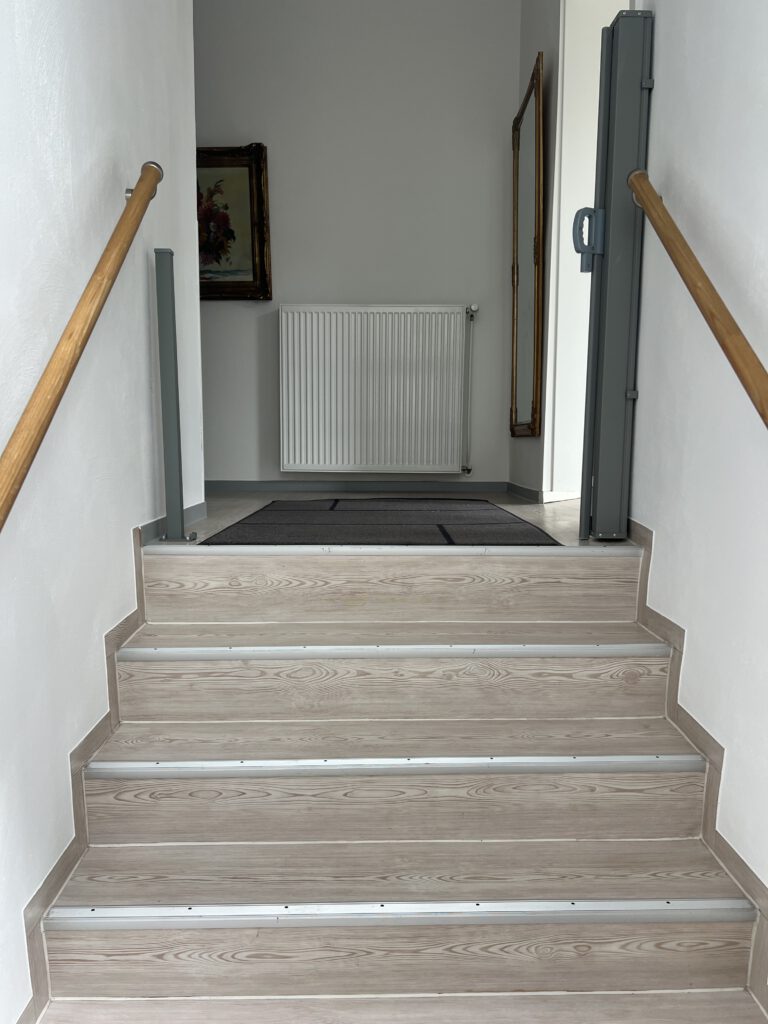 Alles ist ebenerdig und barrierefrei und über einen Fahrstuhl sind alle Etagen zu erreichen.